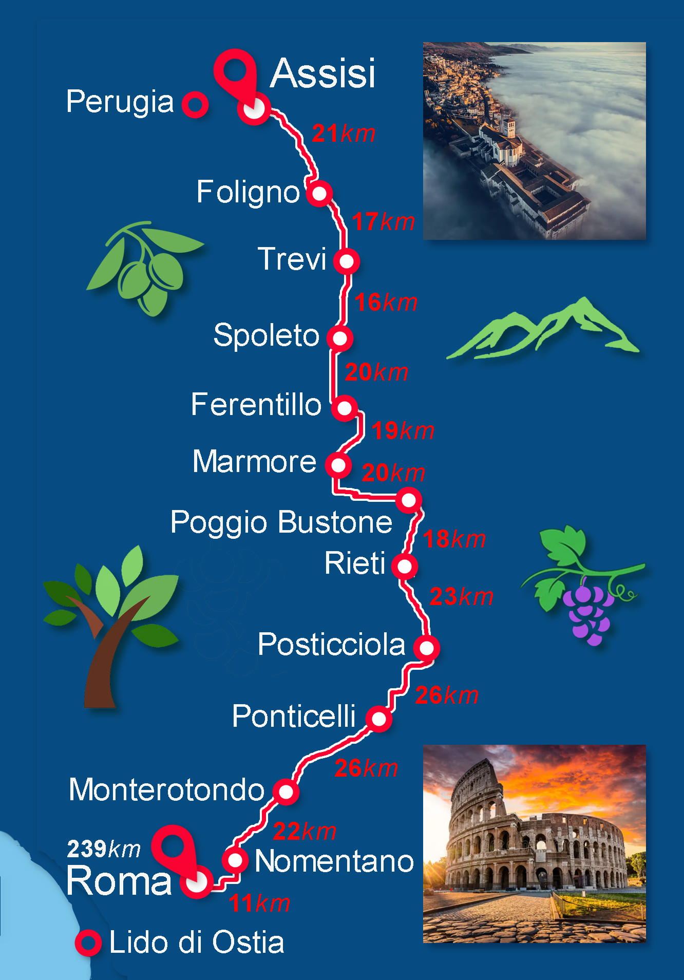zo starobylého Assisi až do večného mesta Ríma.
