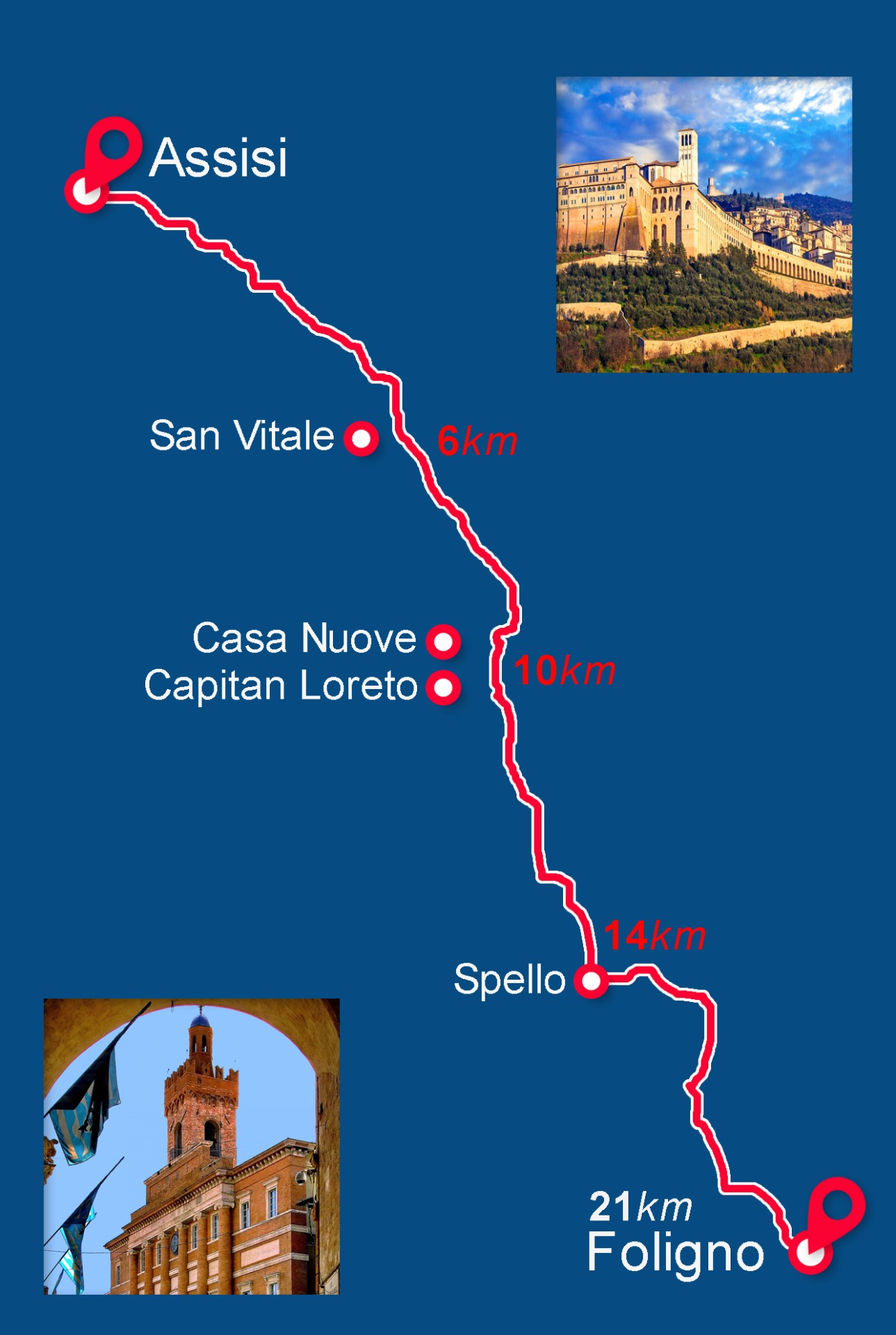 Dĺžka trasy: 21 kmStúpanie: 371 m / klesanie: 381 mMapa trasy pre pútnikovMapa trasy pre mikrobusUbytovanie